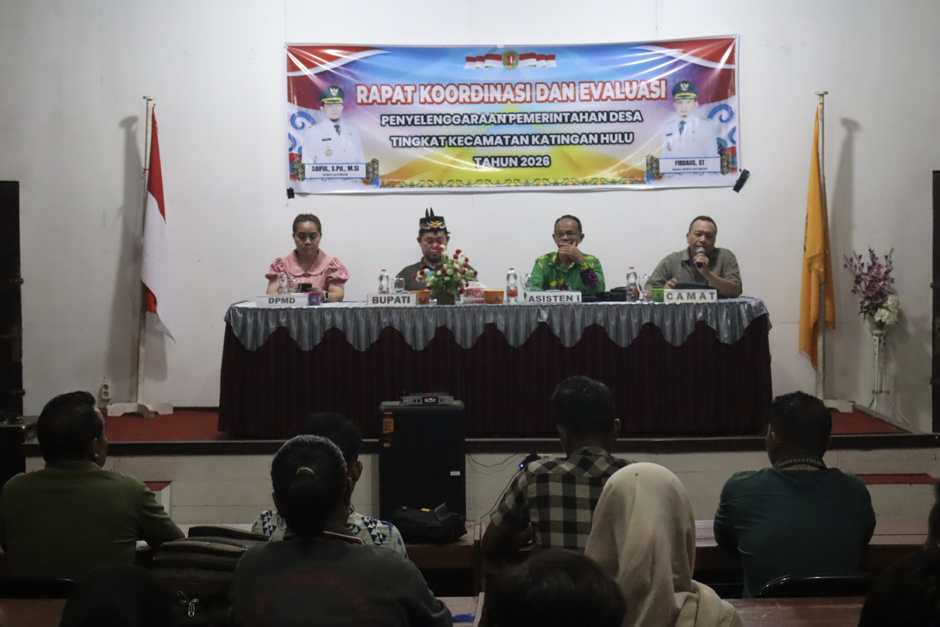 Rapat yang berlangsung di Aula Kantor Kecamatan Katingan Hulu tersebut dihadiri oleh jajaran pemerintah daerah, termasuk Asisten I Setda, Kepala Dinas Pemberdayaan Masyarakat dan Desa, Camat Katingan Hulu, serta para kepala desa, lurah, dan anggota Badan Permusyawaratan Desa (BPD).